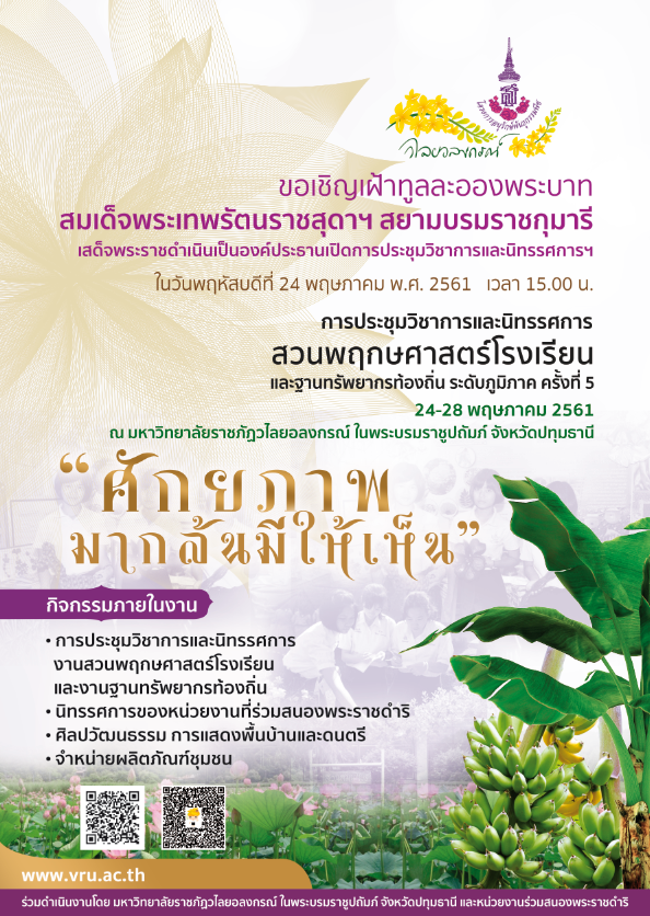 ขอเชิญชวน นักเรียน นักศึกษา และประชาชนทั่วไป เข้าชมงานการประชุมวิชาการและนิทรรศการสวนพฤกษศาสตร์โรงเรียน และฐานทรัพยากรท้องถิ่นระดับภูมิภ...