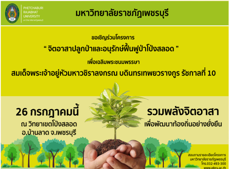 โครงการจิตอาสาปลูกป่าและอนุรักษ์ฟื้นฟูป่าโป่งสลอด เพื่อเฉลิมพระชนมพรรษา รัชกาลที่ 10 ณ วิทยาเขตโป่งสลอด ...