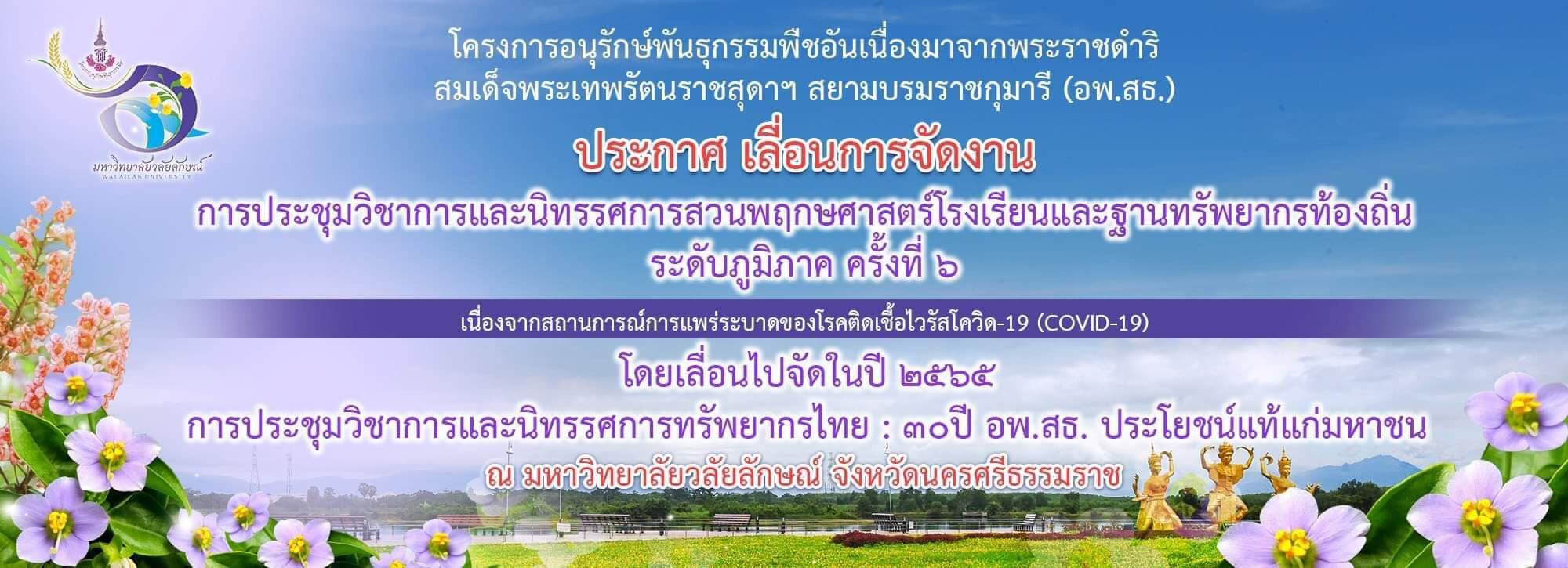 ประกาศเลื่อนจัดงานการประชุมวิชาการและนิทรรศการสวนพฤกษศาสตร์โรงเรียนและฐานทรัพยากรท้องถิ่น ระดับภูมิภาค ครั้งที่ 6 โดยเลื่อนไปจัดปีงบประม...