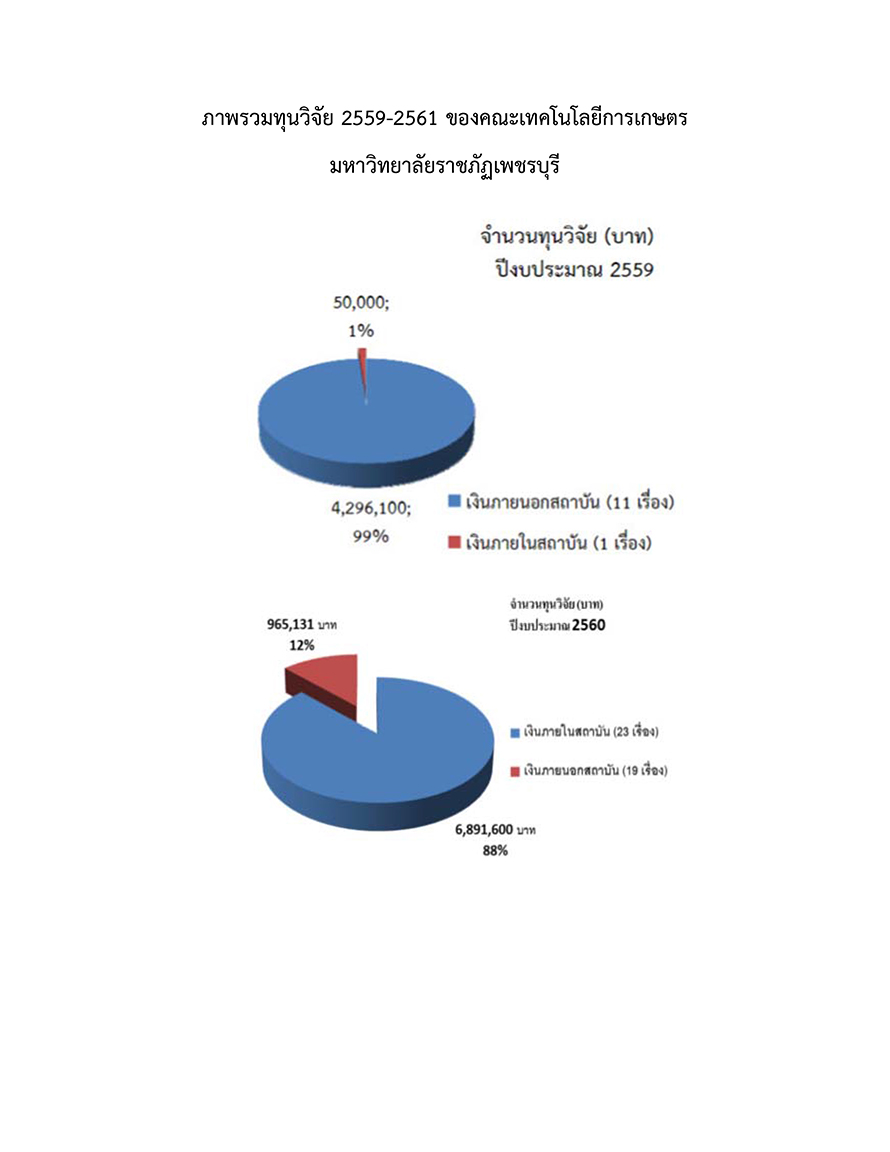 ภาพรวมทุนวิจัย 2559-2561 ของคณะเทคโนโลยีการเกษตร มหาวิทยาลัยราชภัฏเพชรบุรี