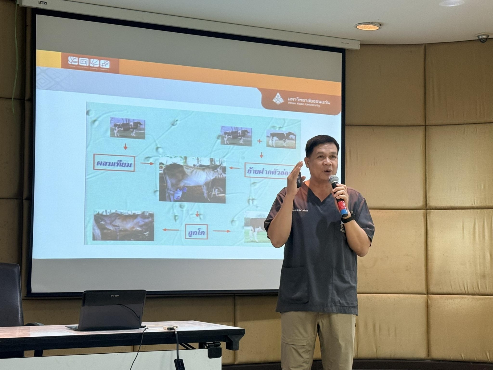 • รศ.น.สพ.ชัยวัฒน์ จรัสแสง คณะสัตวแพทยศาสตร์ มหาวิทยาลัยขอนแก่น ในหัวข้อ “เทคโนโลยีการผลิตและการจัดการน้ำเชื้อสุกรแช่แข็ง”
