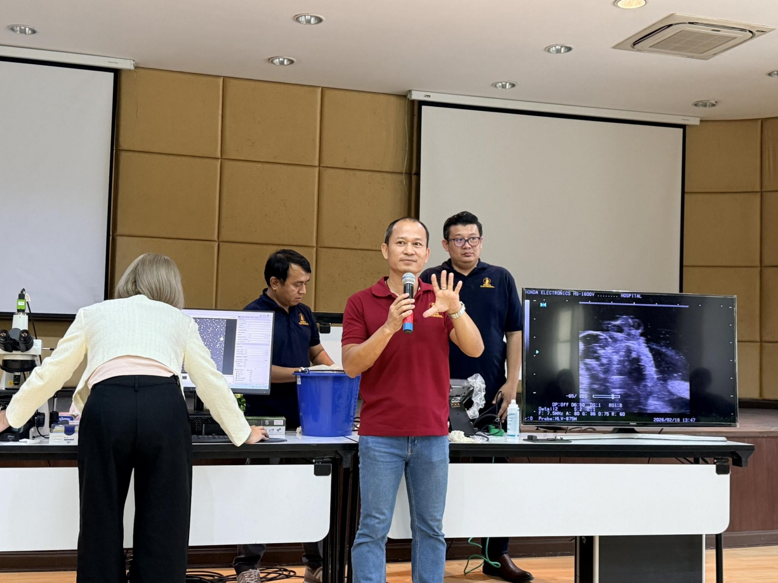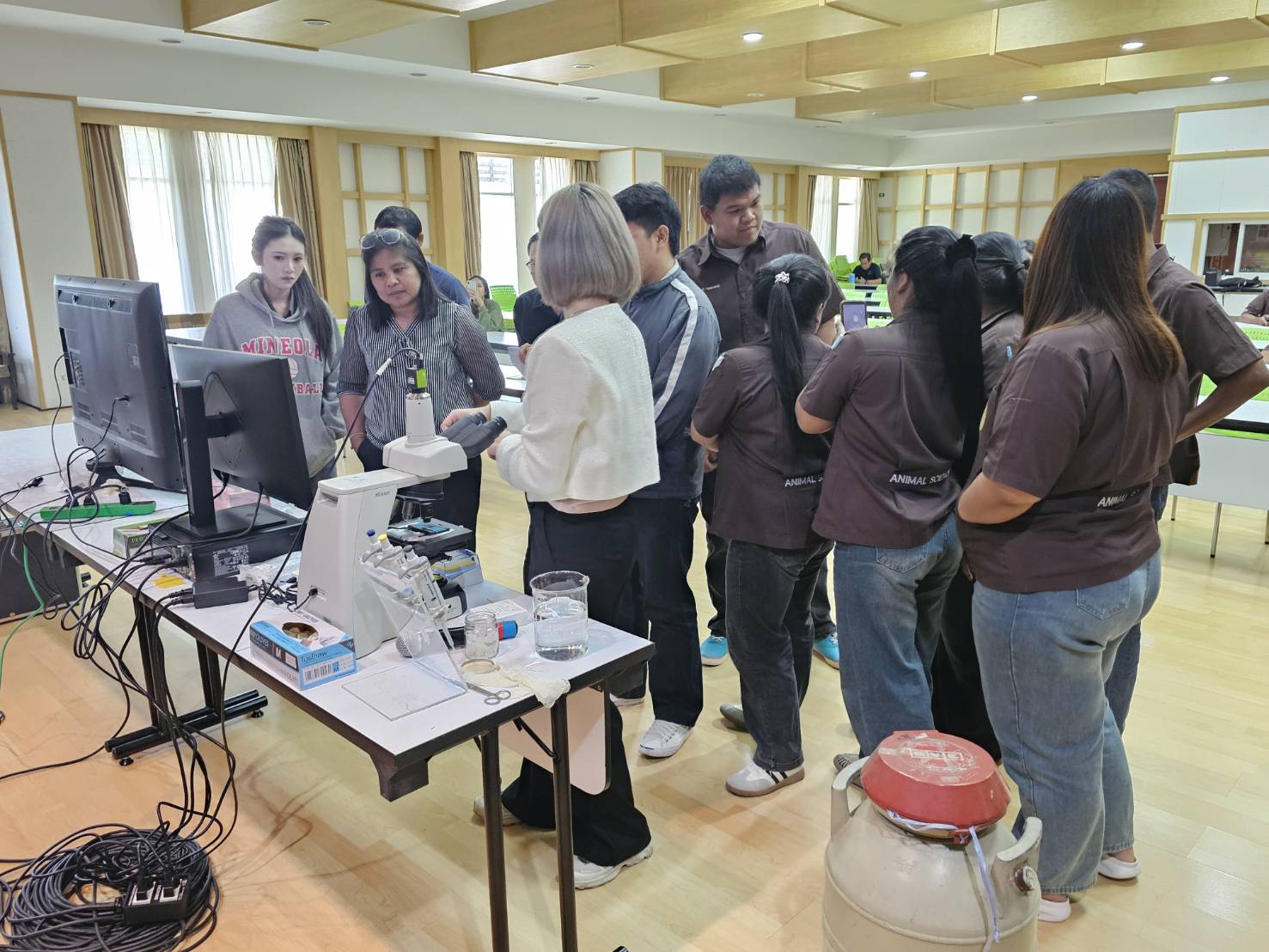 ช่วงบ่ายเป็นกิจกรรม Hands-on ฝึกปฏิบัติการตรวจวิเคราะห์คุณภาพน้ำเชื้อ การตรวจความเข้มข้นและการเคลื่อนที่ของอสุจิภายใต้กล้องจุลทรรศน์จากตัวอย่างจริง เพื่อให้ผู้เข้าร่วมสามารถนำความรู้ไปต่อยอดในการเรียน การวิจัย และการปฏิบัติงานได้อย่างเป็นรูปธรรม